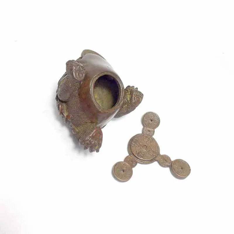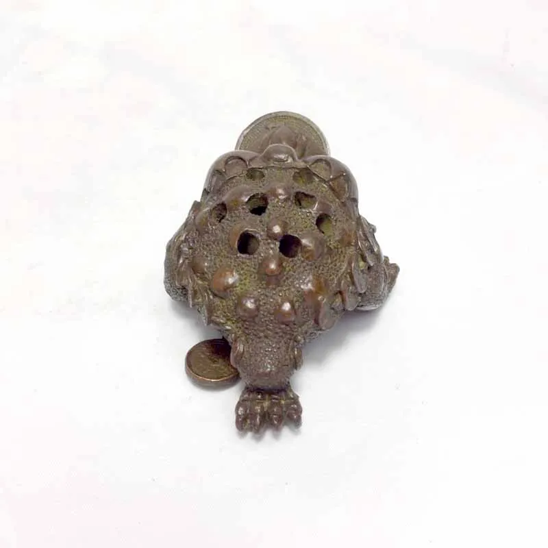 Mini antique hollow brass tea pet three-legged golden toad mouth with Chinese copper COINS incense