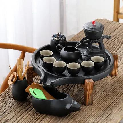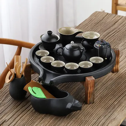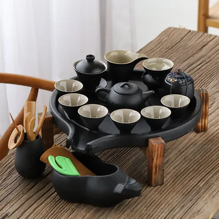 Best Black Ceramic Stone Mill Tea Tray Household Round Ceramic Dry Bubble Storage Water Tea Table Office