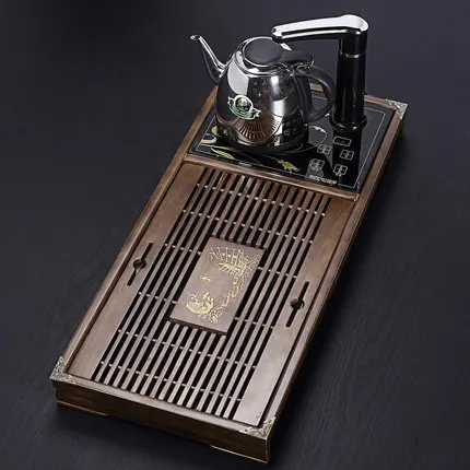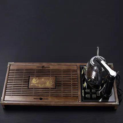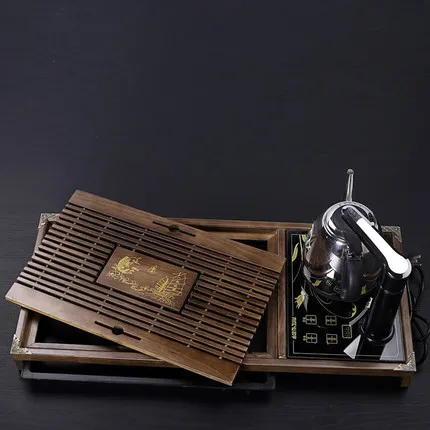 ORIGINAL solid wood tea tray Two in one automatic water and electricity tea stove tea table drawer type drai
