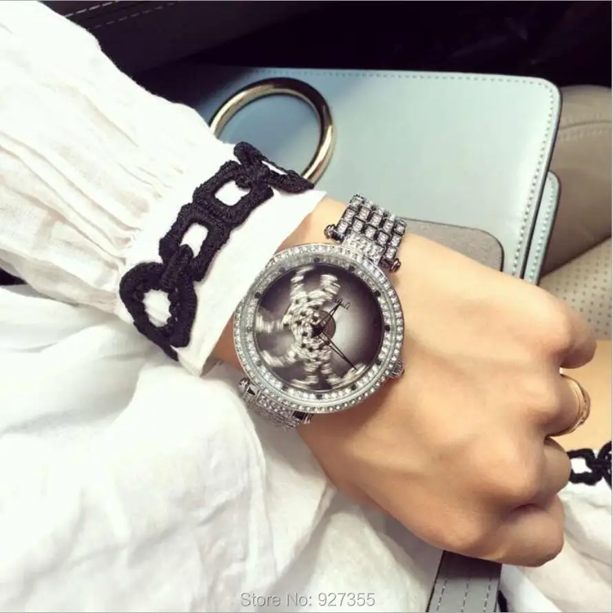 BEST SELLER 3 Colors Women Watch Stainless Steel Watches Lady leopard Rotation Dress Watch Big Diamond Stone Wr
