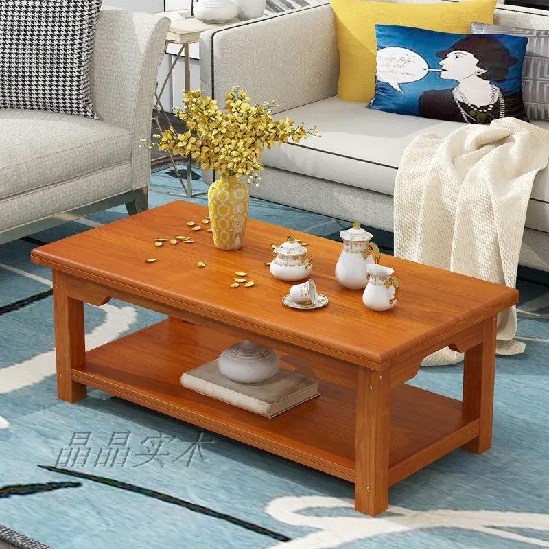 HIGH QUALITY All solid wood logs simple household living room small apartment double storage simple tea table ta