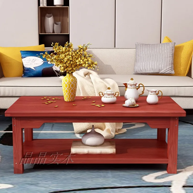 All solid wood logs simple household living room small apartment double storage simple tea table ta