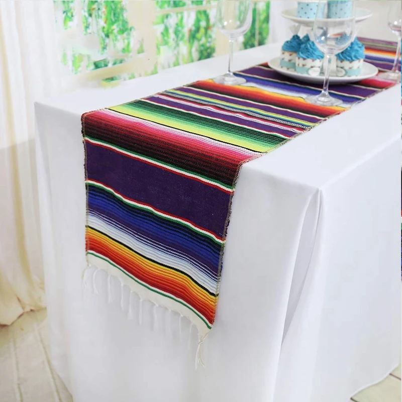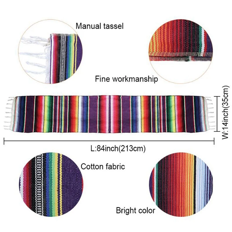 ORIGINAL TOP!-Pack Of 6 14 X 84 Inch Mexican Serape Table Runner For Mexican Party Wedding Decorations Fring