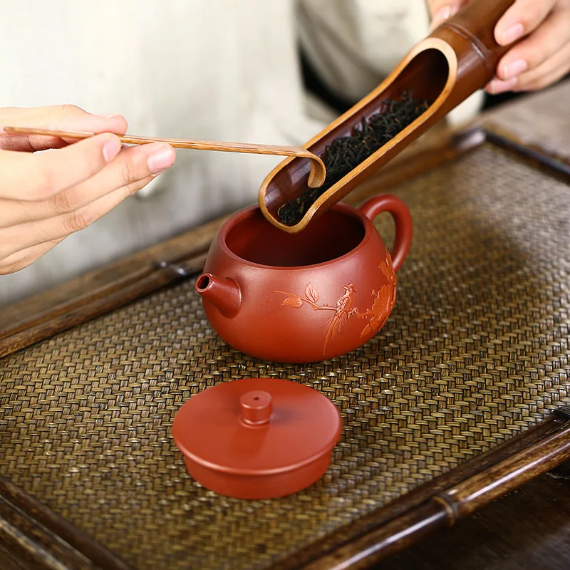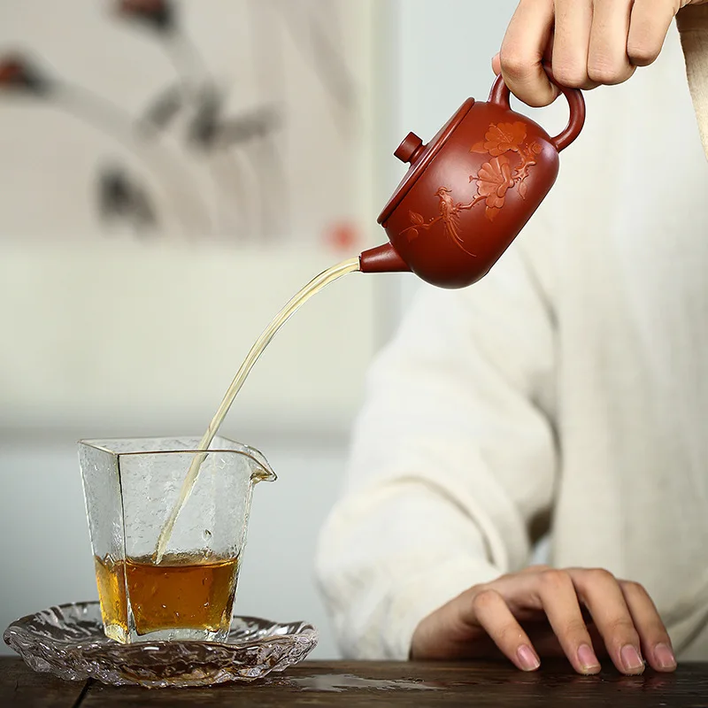 Best Quality Yixing Raw Ore Bright Red Robe Manual Birds ' Twitter And Fragrance Of Flowers Stone Drum Dark-red