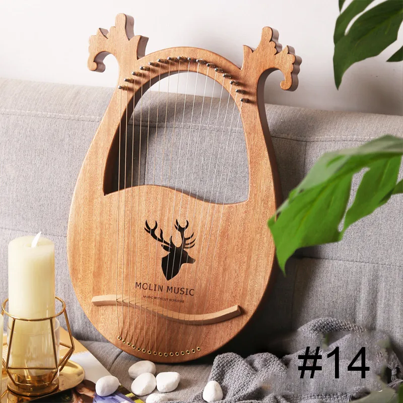 Hot Selling 16-Tone Log Lyre Portable Musical Instrument 16-Strings Solid Wood Veneer Lyre Stringed