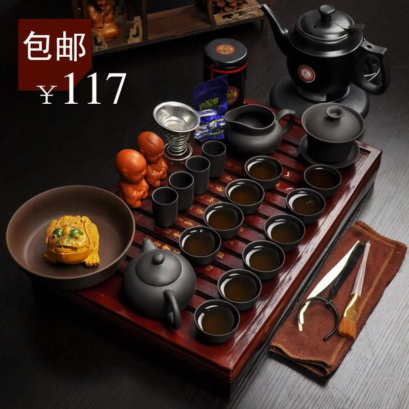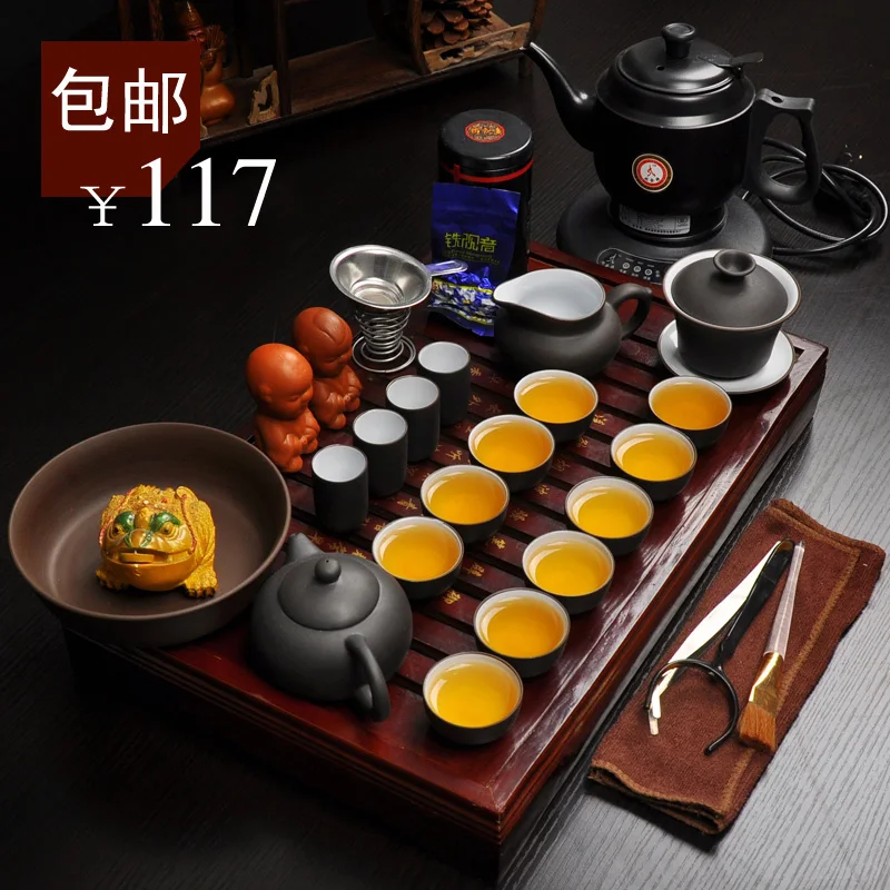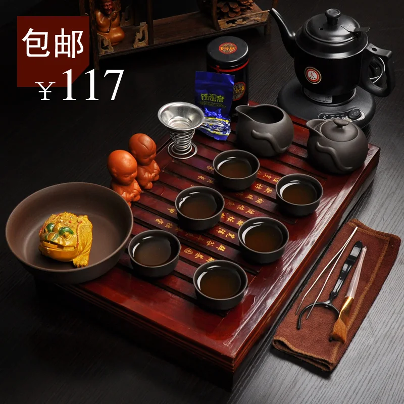 BEST Zisha teapot teacup solid wood tea set special combinations of a complete set of kung fu tea tray c